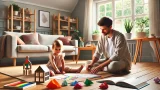 いつもの遊びに少し飽きを感じ始めた親子のイメージです。